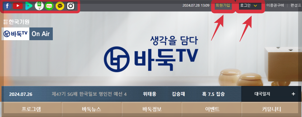 바둑 TV 홈페이지에서 생중계를 보는 방법은 간단합니다.