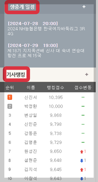 5. 생중계일정과 기사랭킹도 확인하여 시청하실 수 있습니다.