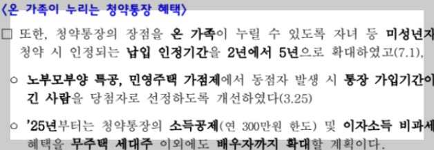 - 미성년자 청약 납입 인정기간 : 2년 → 5년 확대
