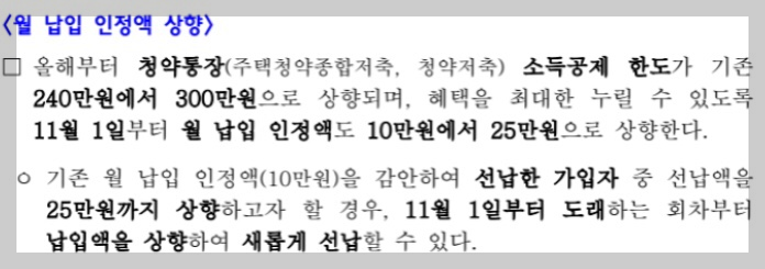2. 청약 통장 25만원 월 납입 인정액 상향