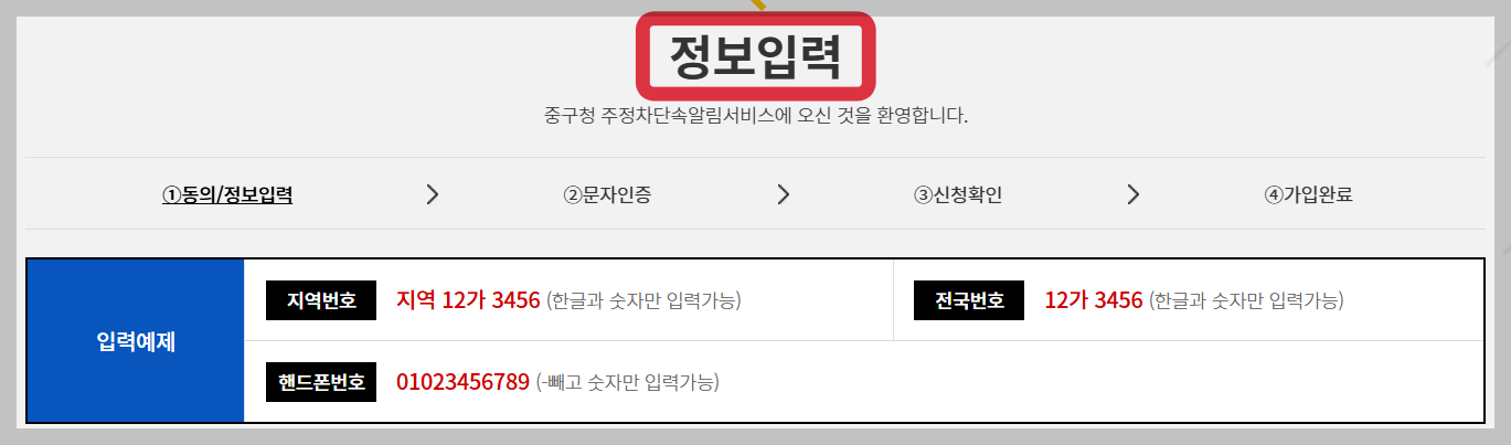 서비스 가입 시 차량번호, 휴대폰번호 등 필수정보를 제공해야 합니다. 이 정보를 바탕으로 주차 단속 알림이 전송됩니다. 신청이 성공적으로 완료되면 주차 단속 활동에 대한 문자 알림을 받게 됩니다.