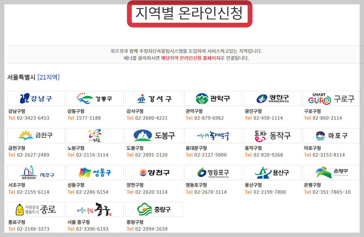 4) 서울 등 도시와 기타 지역은 별도의 시스템을 사용할 수 있으므로 해당 지역에 맞는 정밀 문의 플랫폼을 활용하는 것이 가장 좋습니다.