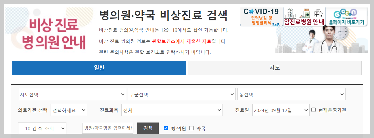 - 응급실은 긴급 상황 전용이므로, 긴급하지 않은 경우 가까운 병원이나 당번 약국을 이용하는 것이 좋습니다.
