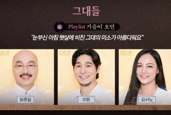 "가을이 오면"의 가사 : 가을이 오면 눈부신 아침 햇살에 비친 그대의 미소가 아름다워요 눈을 감으면 싱그런 바람 가득한