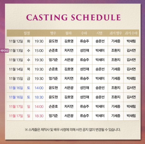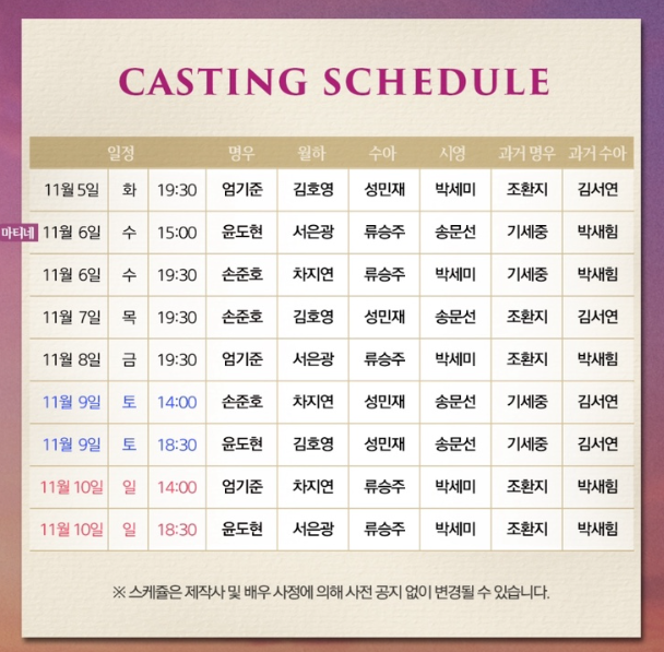 단, 월요일은 공연이 없으니 예매 시 주의해야 합니다.