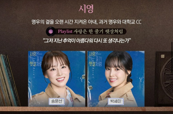 '옛사랑'은 과거의 사랑에 대한 회상을 담고 있는 곡으로, 명우가 수아를 그리워하는 장면에서 불려집니다. 애절한 멜로디와 가사는 관객들에게 깊은 여운을 남기며, 사랑의 아픔과 그리움을 동시에 느끼게 합니다. 이 곡은 특히 중년의 명우가 자신의 인생을 돌아보는 순간에 불려져, 감정적으로 매우 중요한 역할을 합니다.