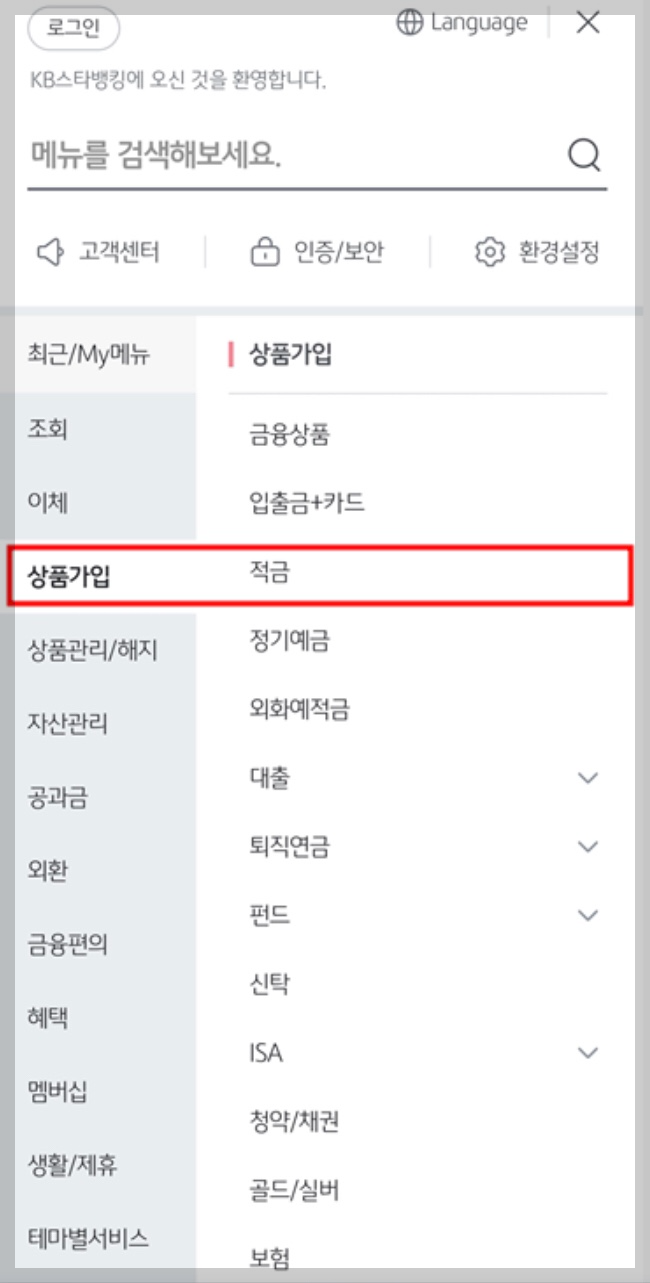 - KB 스타뱅킹 모바일 접속 - 상품가입 - 적금 선택