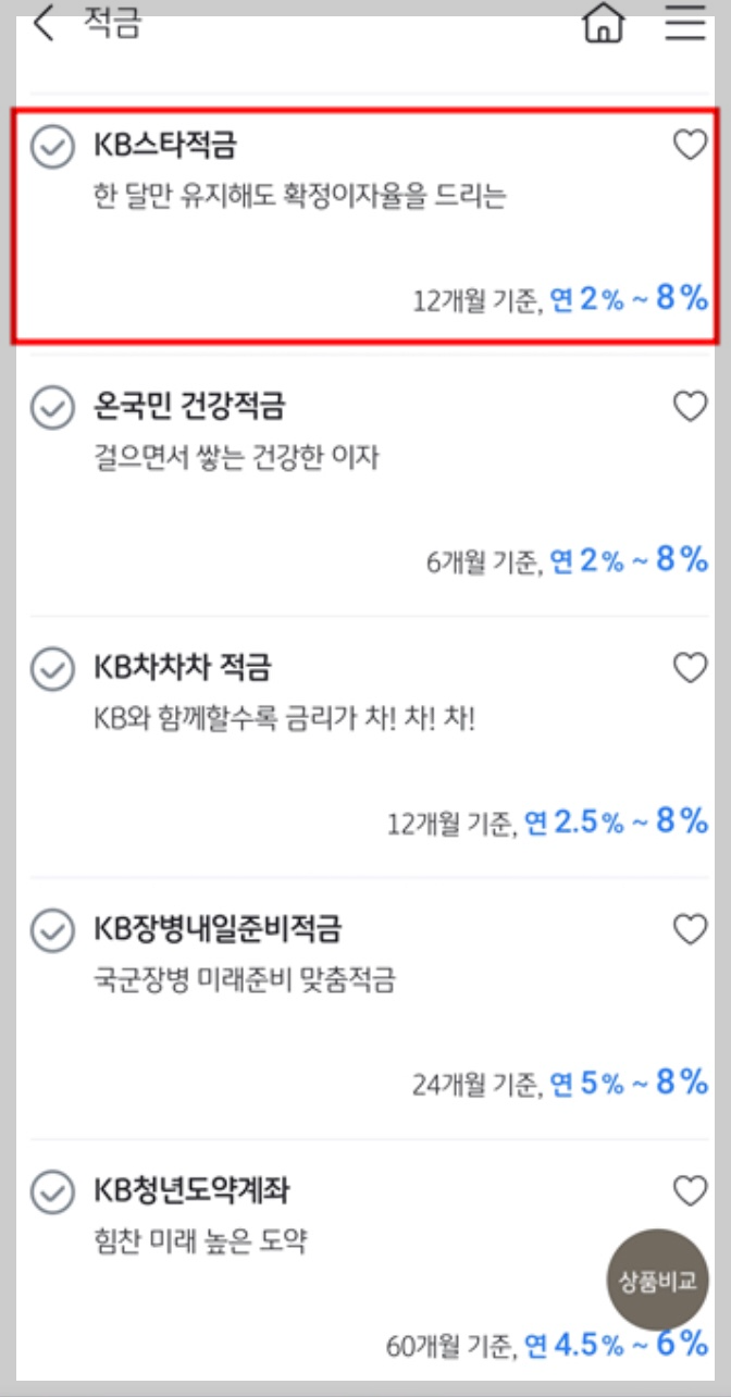 - KB 스타적금 선택