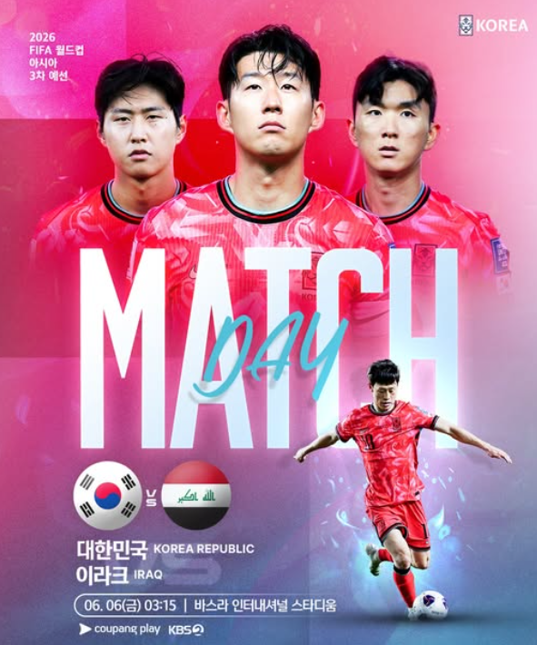2026 월드컵 아시아 3차 예선 6월 6일 이라크전 중계방송을 놓치고 싶지 않다면 지금 이 글을 주목하세요! 새벽 경기, 실시간 시청법, 해설진, 관전 포인트까지 5분 만에 완벽 정리해 드립니다. ▼