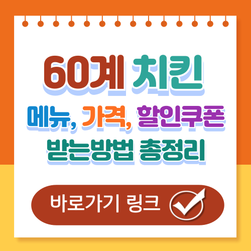 완벽한 프라이드 치킨을 맛볼 수 있는 곳, 60치킨에 대해 궁금하신가요? 60계 치킨은 최고의 품질을 보장하기 위해 매일 신선한 기름을 사용하여 새기름으로 정확히 60마리의 닭을 튀기는 것을 자랑스럽게 생각합니다. 아래 링크를 남겨드리오니 둘러보시고 60계 치킨과 함께 행복한 날 되세요!!
